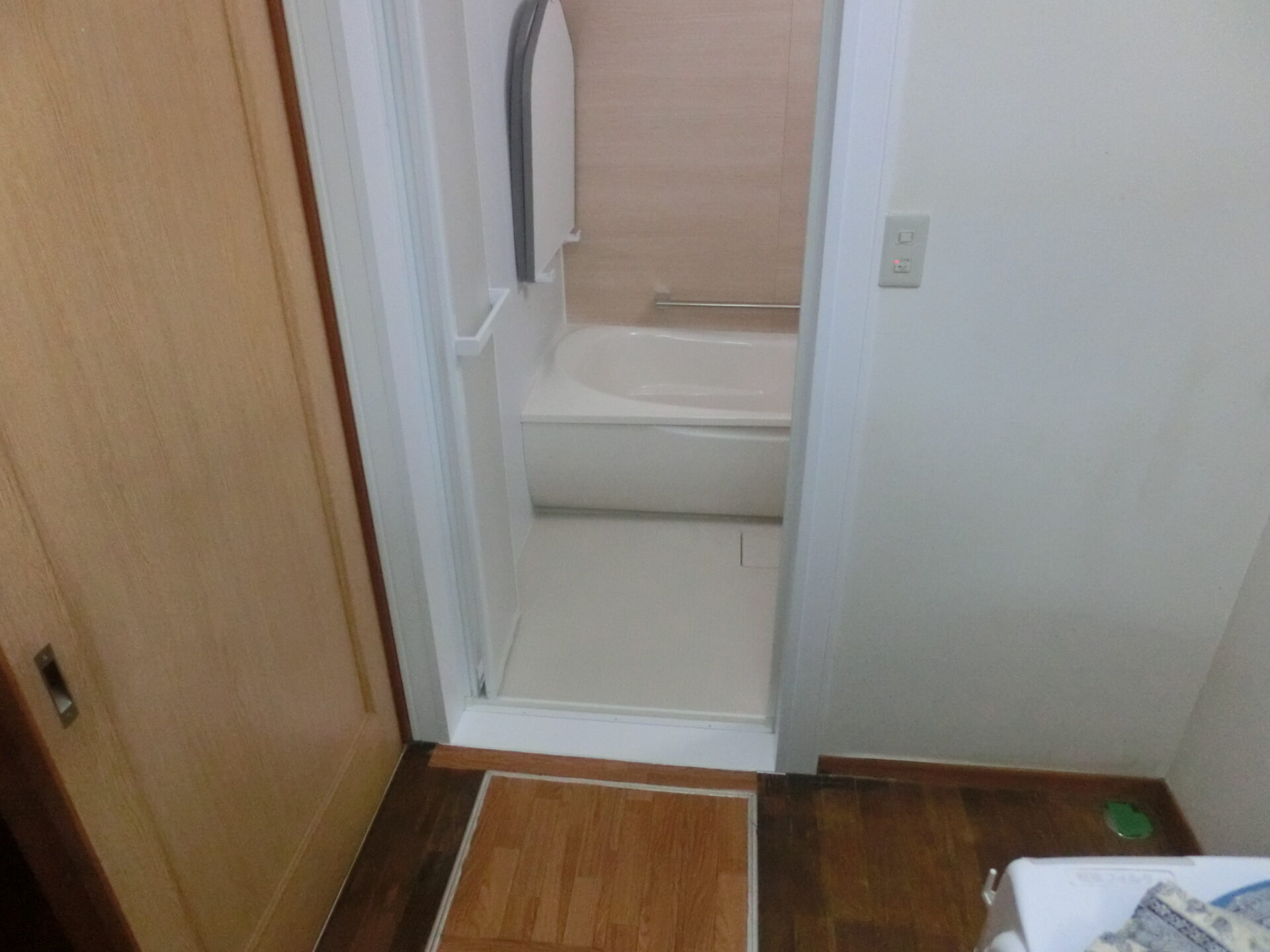 接する脱衣場の壁や床の改修が必要ですが