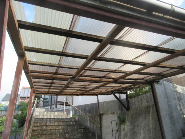 屋根構造の鉄骨が錆びて穴が空いたり