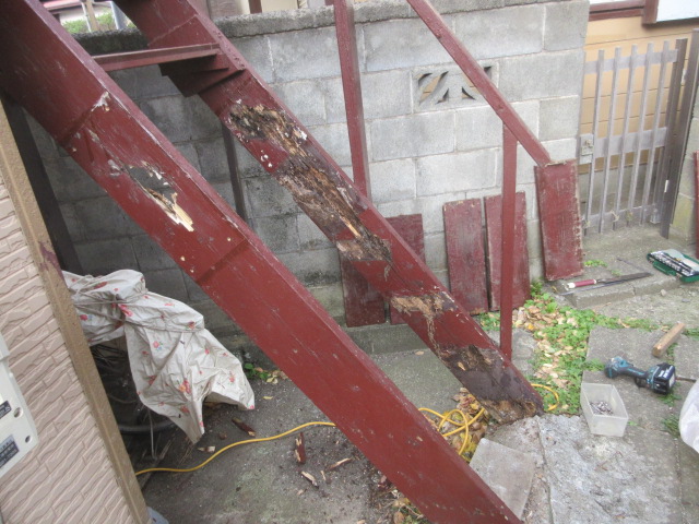 [三浦市向ヶ崎町I貸家]階段の補強を行いました「階段リフォーム」「デッキ工事」