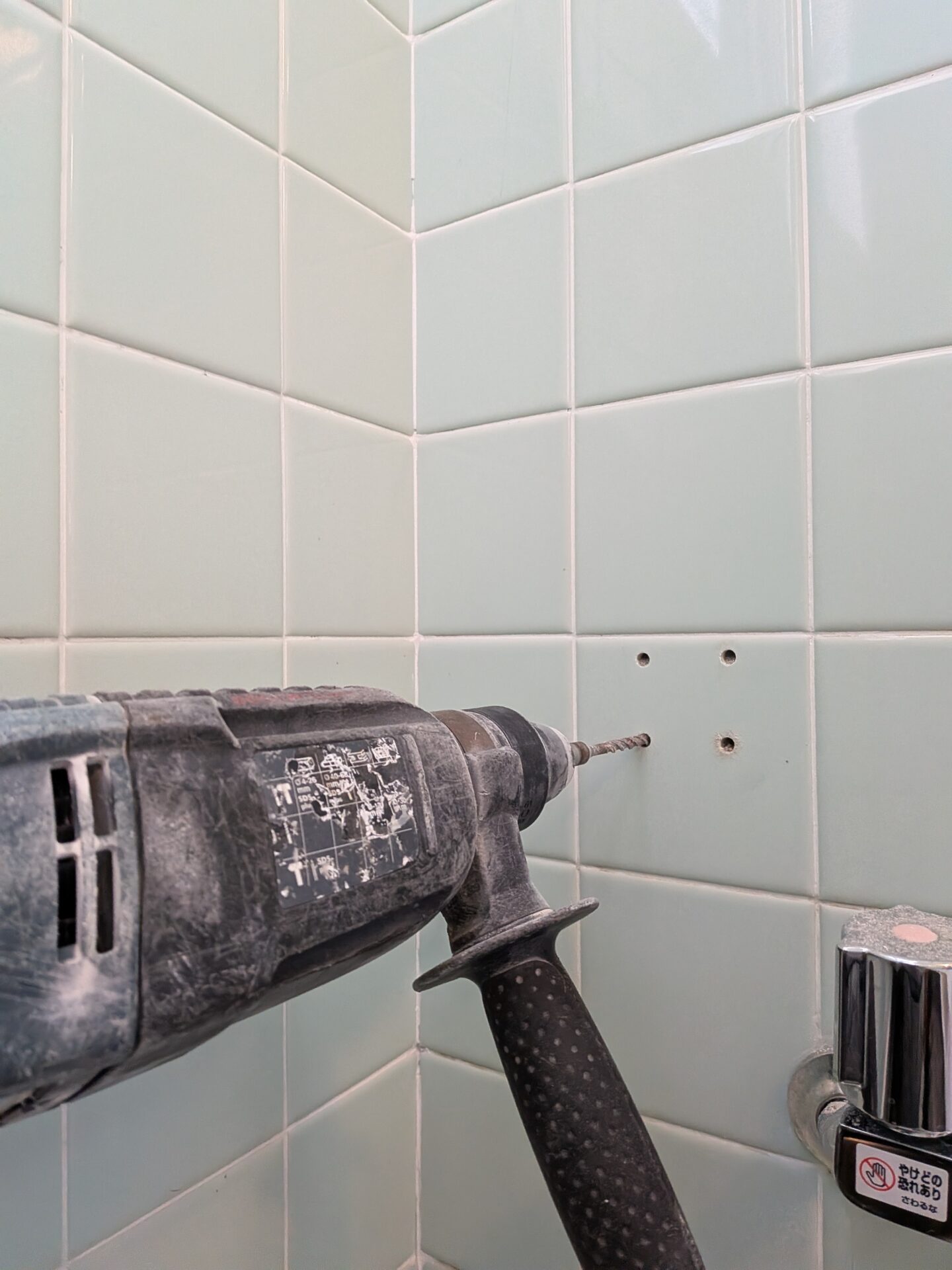 タイルに専用ドリルで下穴を空け