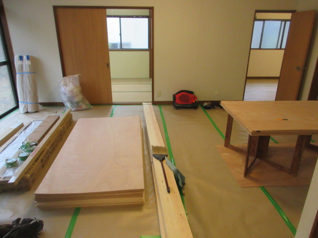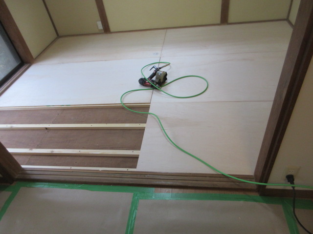 リビング床の窓際側に薄いリフォーム用の