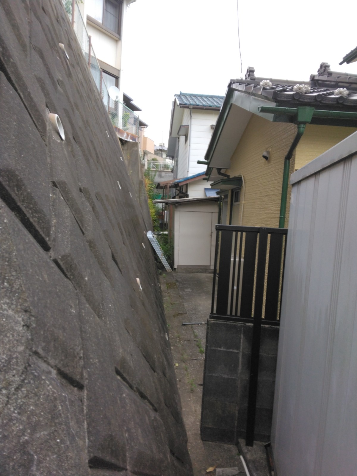 :間知石積み:工事費(不具合部撤去処分+モルタル形成補修など 約¥8.5万)